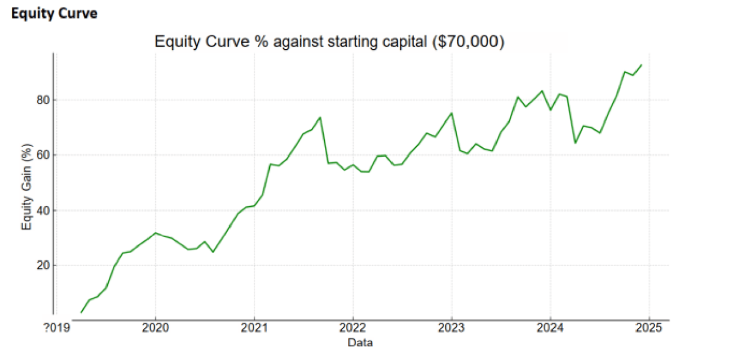 Portfolio 2 – 1 Apr 2019 to 1 Dec 2024 – 70,000 USD (+90%)